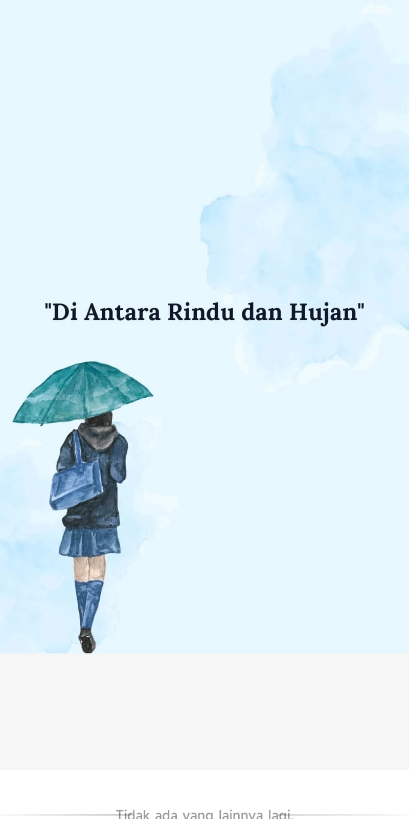 Di Antara Rindu dan Hujan adalah kisah tentang dua hati yang tak sempat berpamitan, namun masih saling mencari dalam diam. Di bawah langit yang selalu basah, mereka belajar bahwa rindu tidak selalu ...